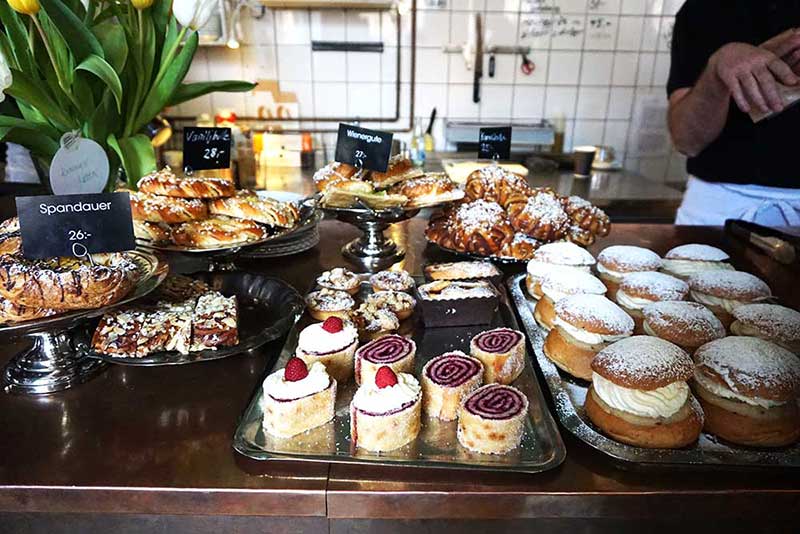 Hos Systrarna Andersson finner du en tilltagen och trevlig frukost med goda frallor, yoghurt, färsk frukt, gott kaffe och mycket mer.
