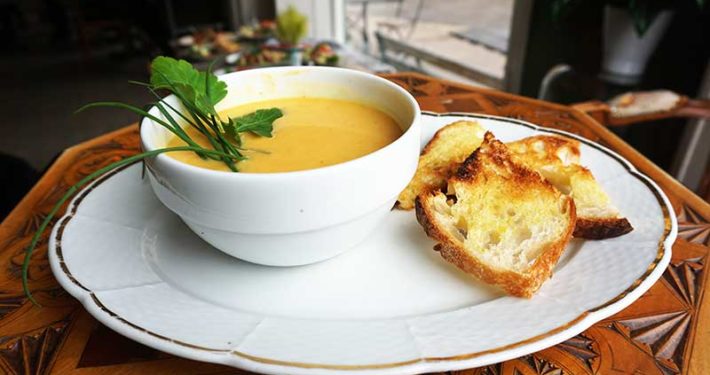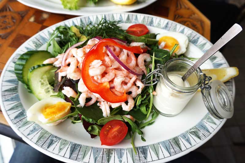 God smörgåsar, sallader, grillade mackor och soppor. För barnen finns pannkakor och annat smaskigt.