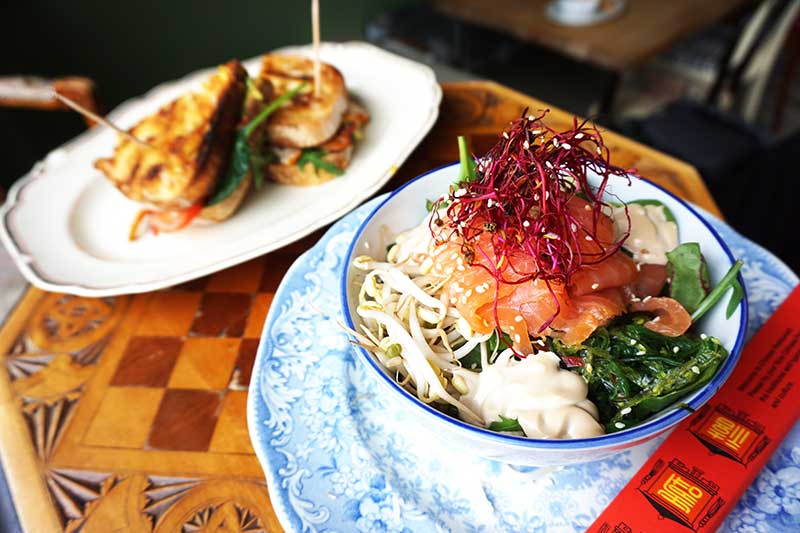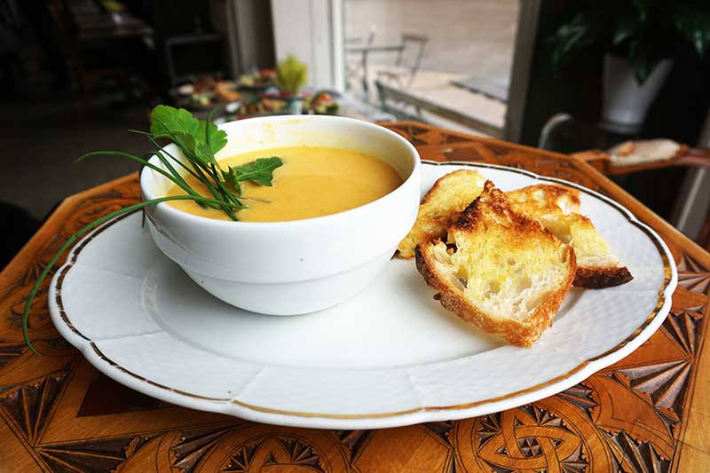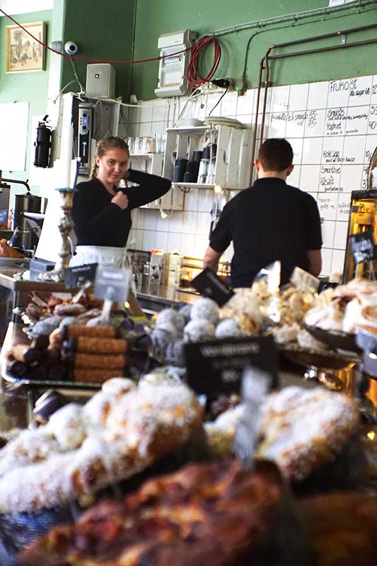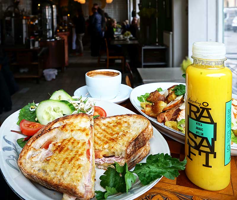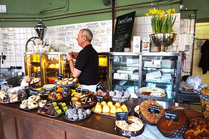 Hos oss kan du äta frukost, lunch och fika. Vi erbjuder goda och välkomponerade måltider för alla smaker och åldrar. Du hittar frukostpaket, veckans lunch, soppor, smörgåsar och goda sallader men också trevliga bakverk och gott kaffe. Kom för vår goda mat och stanna för den trevliga stämningen och härliga atmosfären!